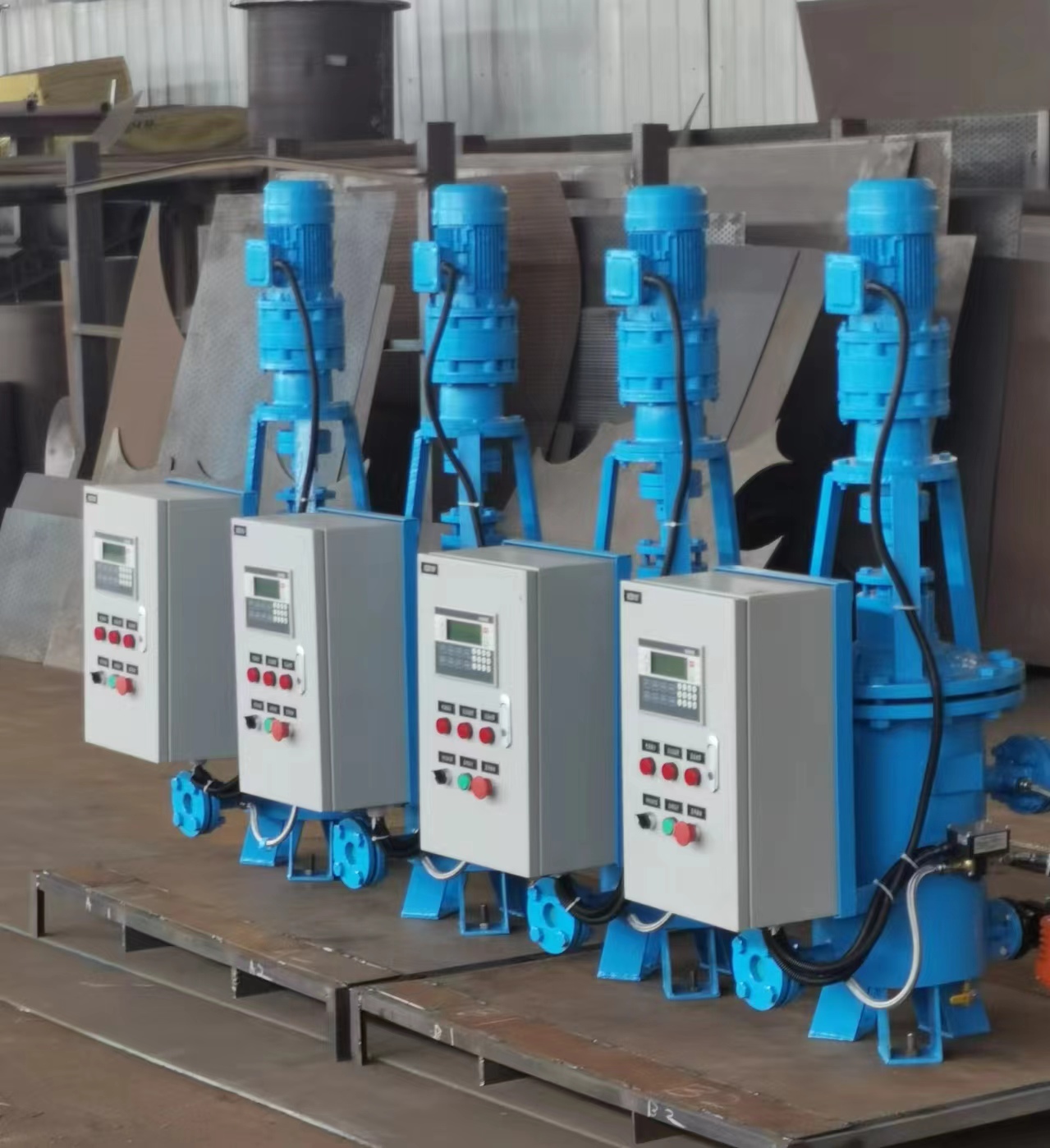 如用戶選型為電動濾水器,則當雜質聚積到一定數(shù)量時,利用冷卻水進出水管之間差壓信號來開啟電動排污閥,對附著在網(wǎng)芯內側壁面上的雜質污物反向沖洗,經(jīng)由排污斗、排污管路和排污閥門排入冷卻水出水管中。排污斗步一進旋轉,依次對準球面網(wǎng)芯每一分格壁面,進行反沖洗。