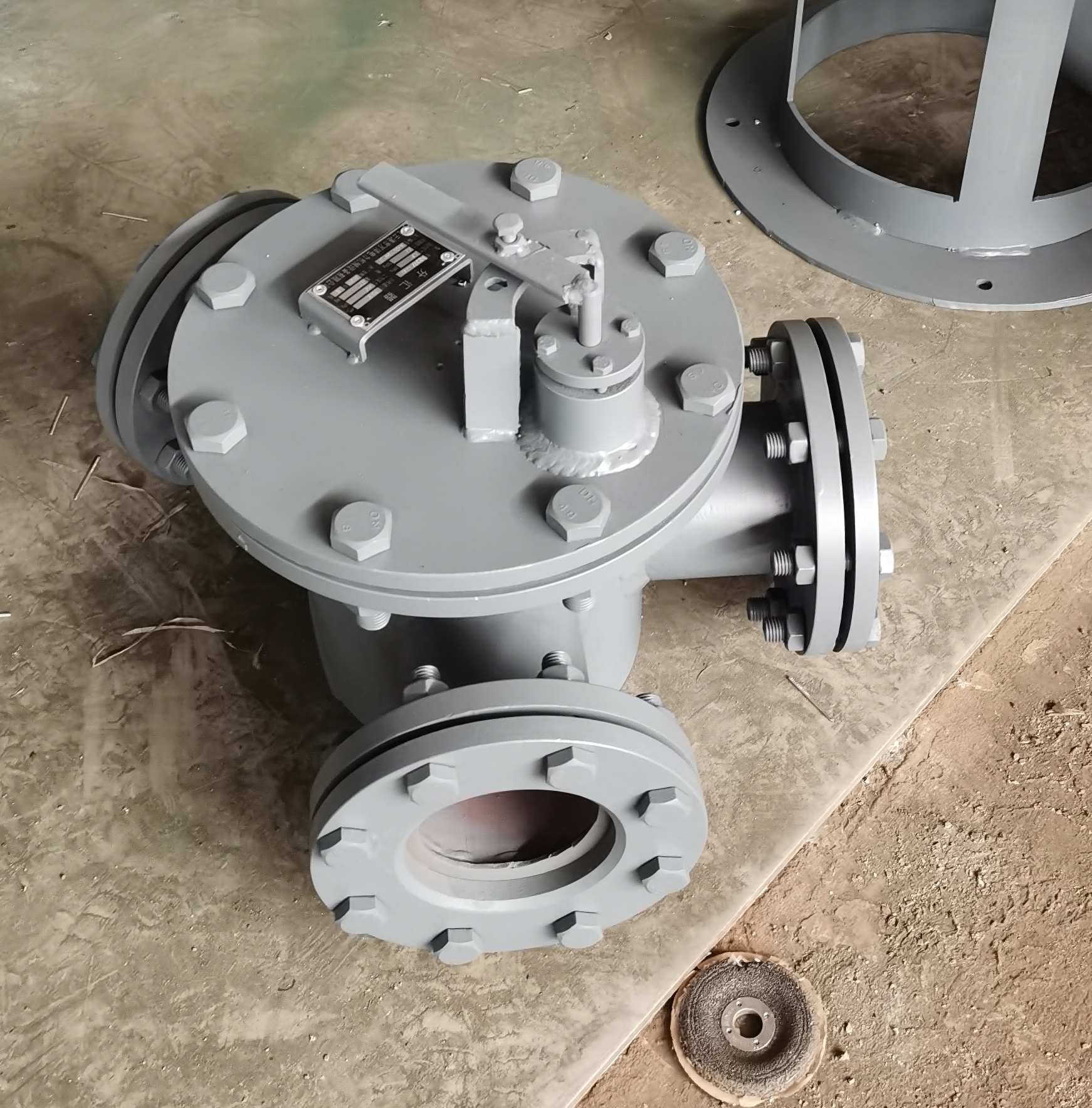 分匯器是一個三通閥,通過導向板的切換可使膠球進入需要清洗的一側凝汽器中工作。一般一臺機組需兩臺分匯器,其進口通徑為DN100,分配口為DN89,膠球投用時可通過窺視窗觀察運行情況。